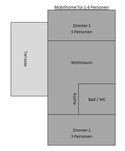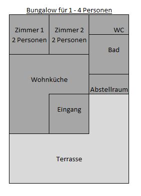 Die komplett eingerichteten Bungalows bieten für 2 - 4 Personen Platz und das Mobilhome bietet für 2-6 Personen Platz. Vollständige Küche, eigenes WC, Dusche und Waschraum sowie ein Abstellraum.