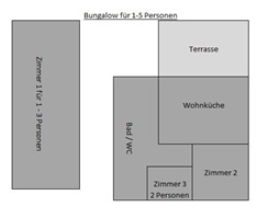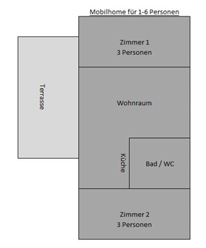 Die komplett eingerichteten Bungalows bieten für 2 - 4 Personen Platz und das Mobilhome bietet für 2-6 Personen Platz. Vollständige Küche, eigenes WC, Dusche und Waschraum sowie ein Abstellraum.